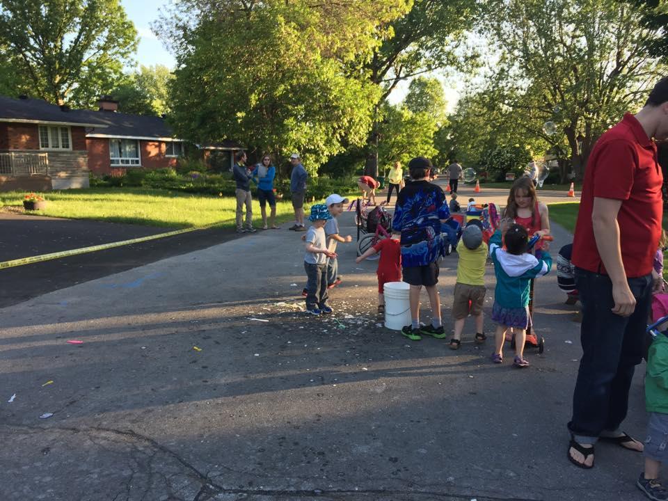 2:00 pm: Barriers are put up (Street is closed from vehicle traffic)